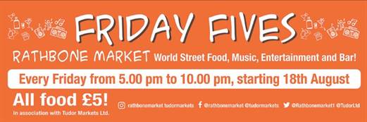 Friday Fives is launching at Rathbone Market Friday 18th August 2017 !